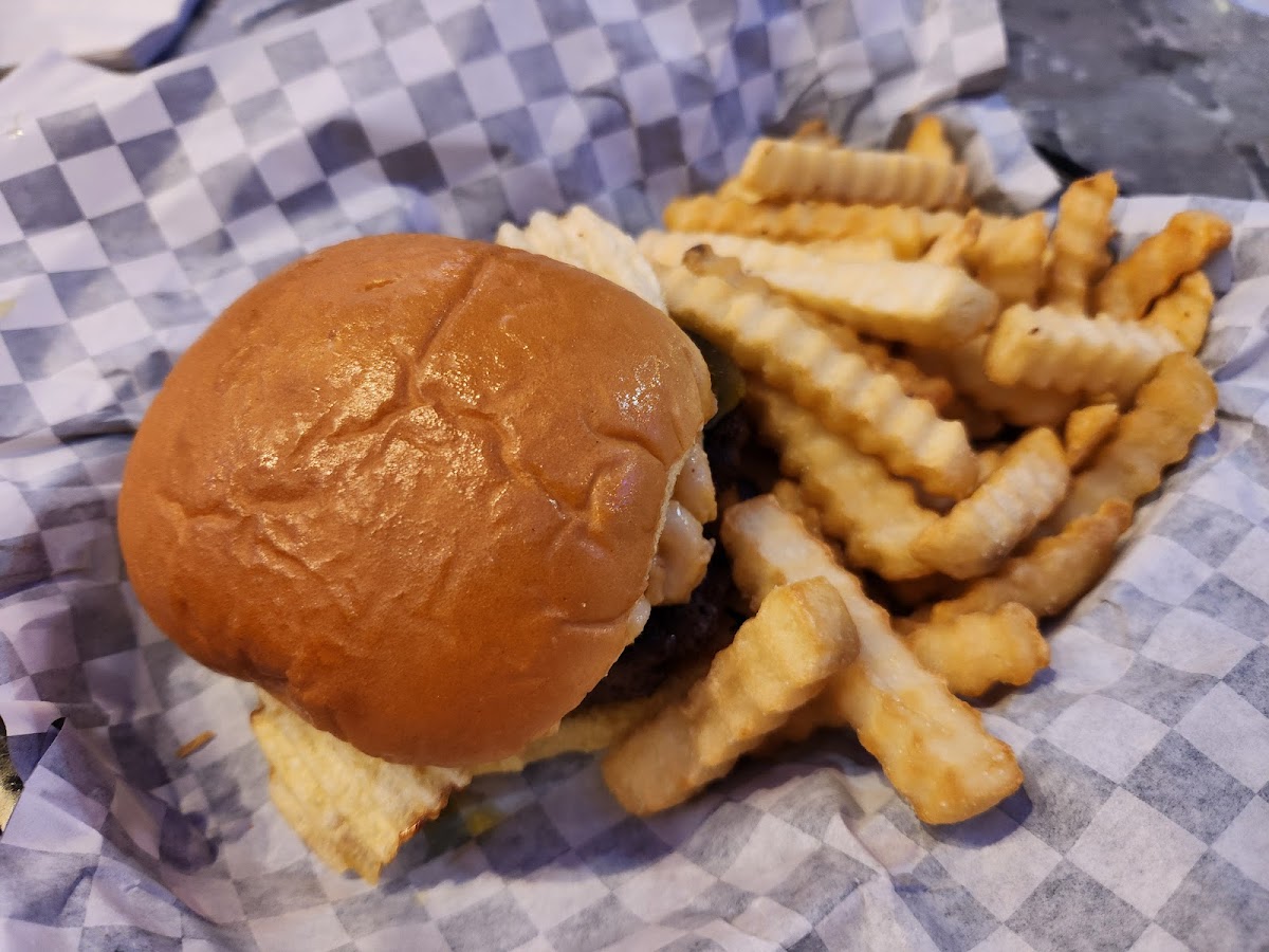 Delicious burgers. Good service. I had an issue with my bun being kind of wet and they were so gracious and get me a new one. Would definitely go again. Quaint little downtown area. There is a parking area right across the street.